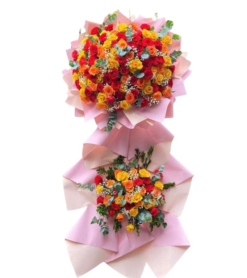 Kệ Hoa Chúc Mừng Tone Hồng Đỏ 2 Tầng | DHT-131