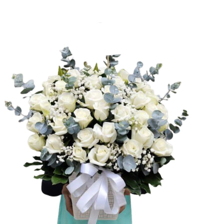 Giỏ Hoa Viếng Tone Trắng Hoa Hồng | DHT-093