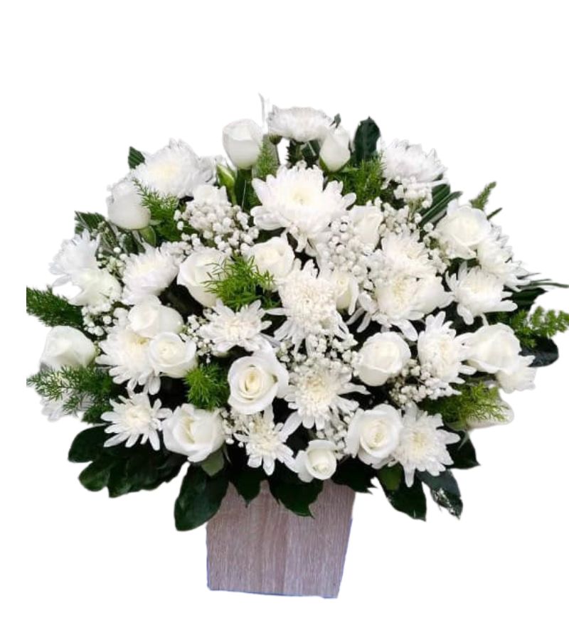 Giỏ Hoa Viếng Tone Trắng Mix Cúc | DHT-095