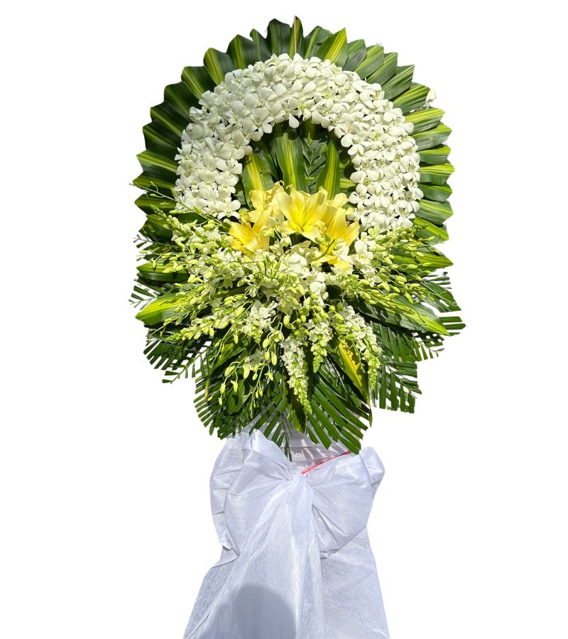 Vòng Hoa Lan Trắng Ly Vàng – Tưởng Nhớ Vô Hạn | DHT-070